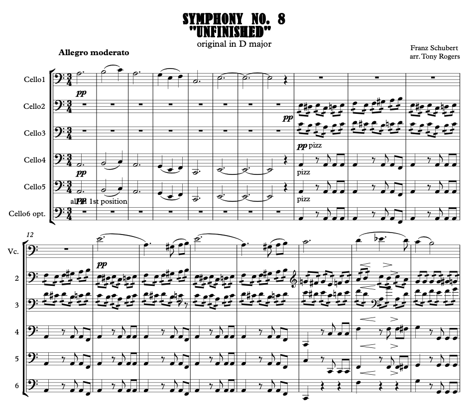 Schubert Unfinished Symphony for Cello Quintet SCORE AND PARTS